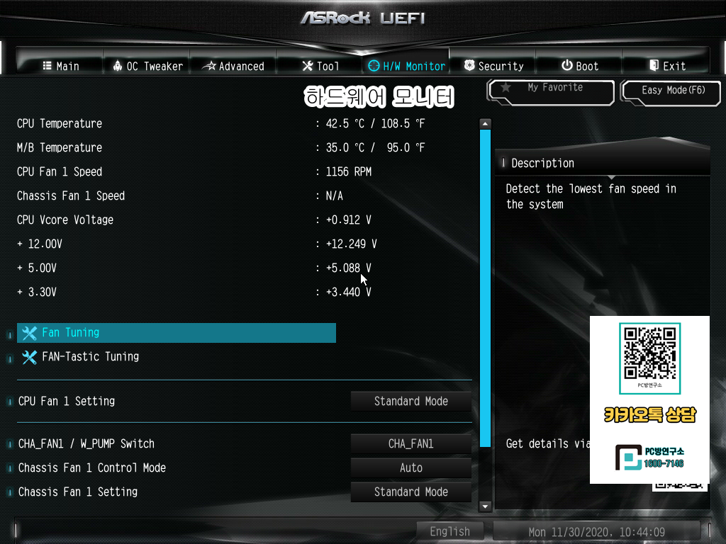 팬 속도를 확인 및 조절할 수 있는 메뉴입니다.