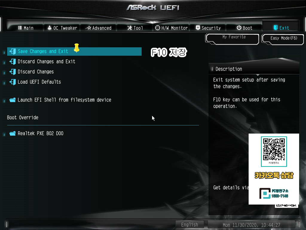 Save Changes and Exit 눌러 OK 하셔도 되고