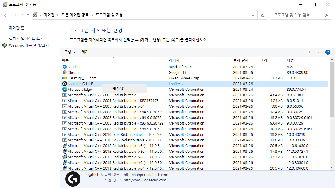 로지텍 프로그램을 삭제한 후에 게임을 실행하시면 됩니다.