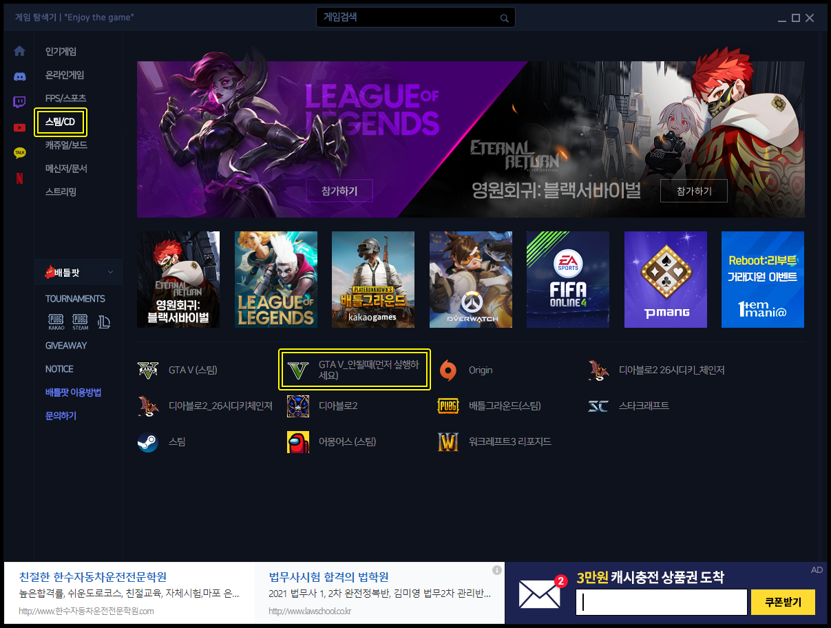 스팀/CD 항목에 'GTA V_안될때(먼저 실행하세요)' 라는