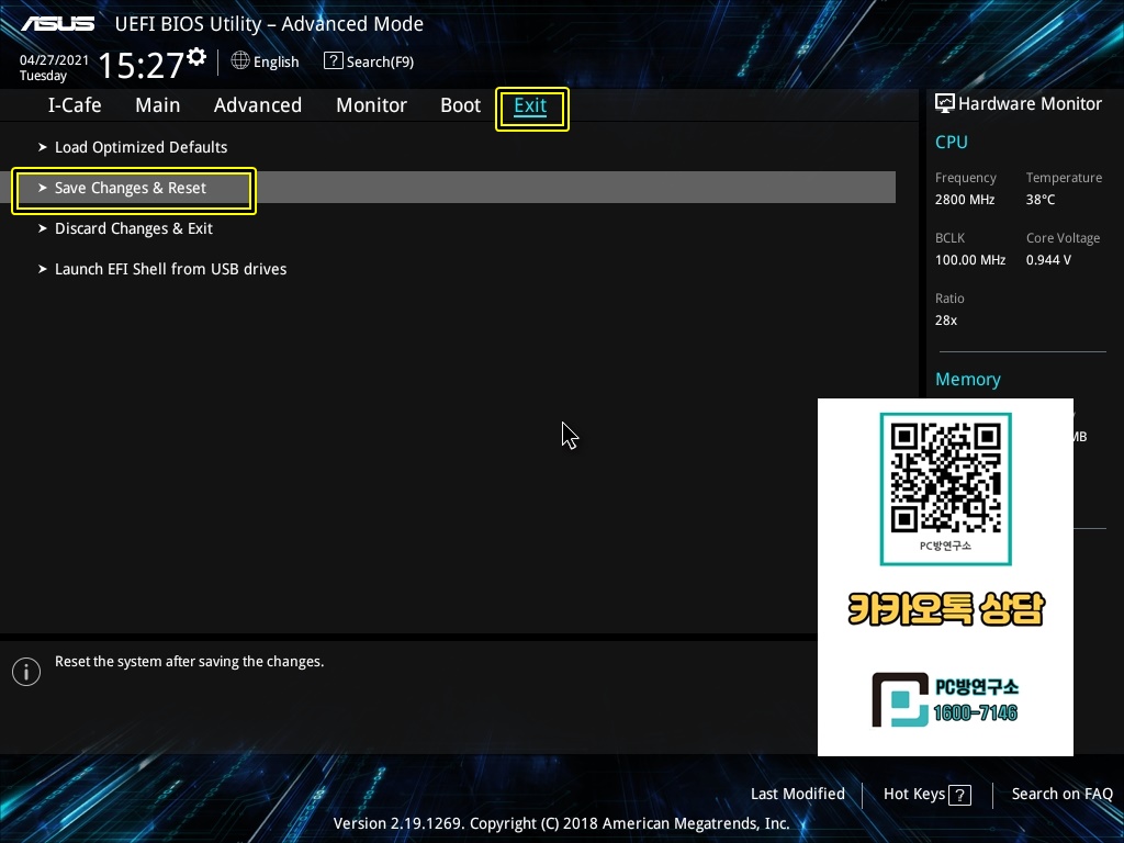 Save Changes & Reset을 선택하거나 F10 눌러 저장합니다.
