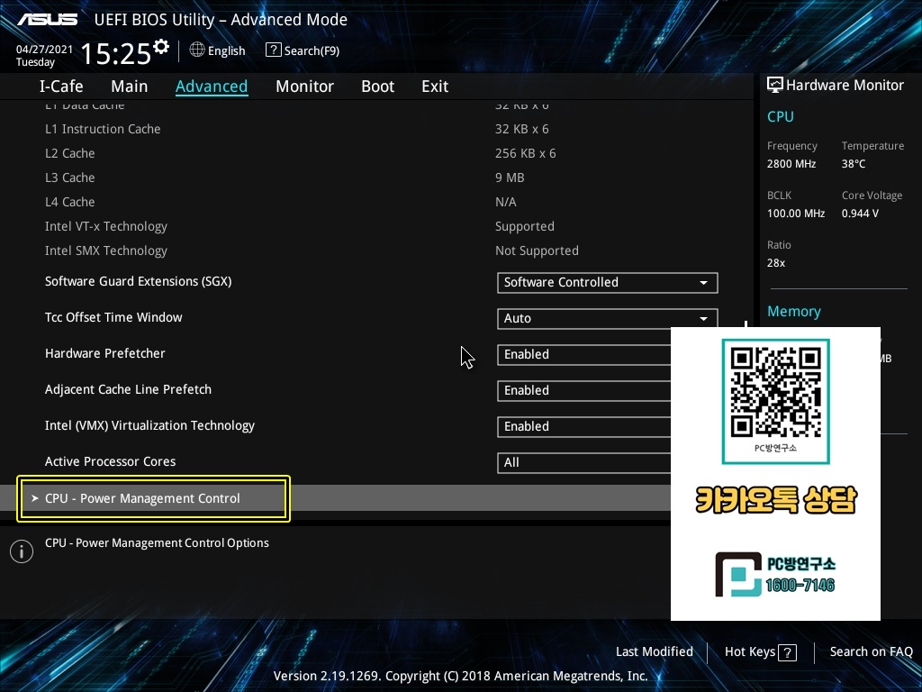 4. 더 아래에 CPU-Power Management Control로 진입합니다.
