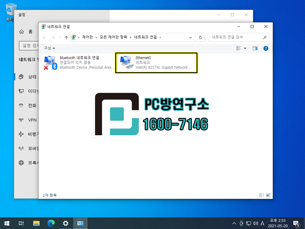 3. 네트워크 연결 항목이 열리고 이더넷 목록이 나옵니다.