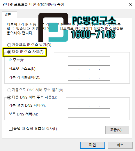 컴퓨터 고정 IP 넣는 방법