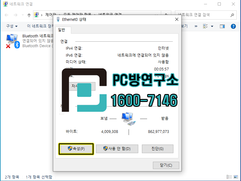 선택 후 아래에 '속성(R)'을 눌러줍니다.
