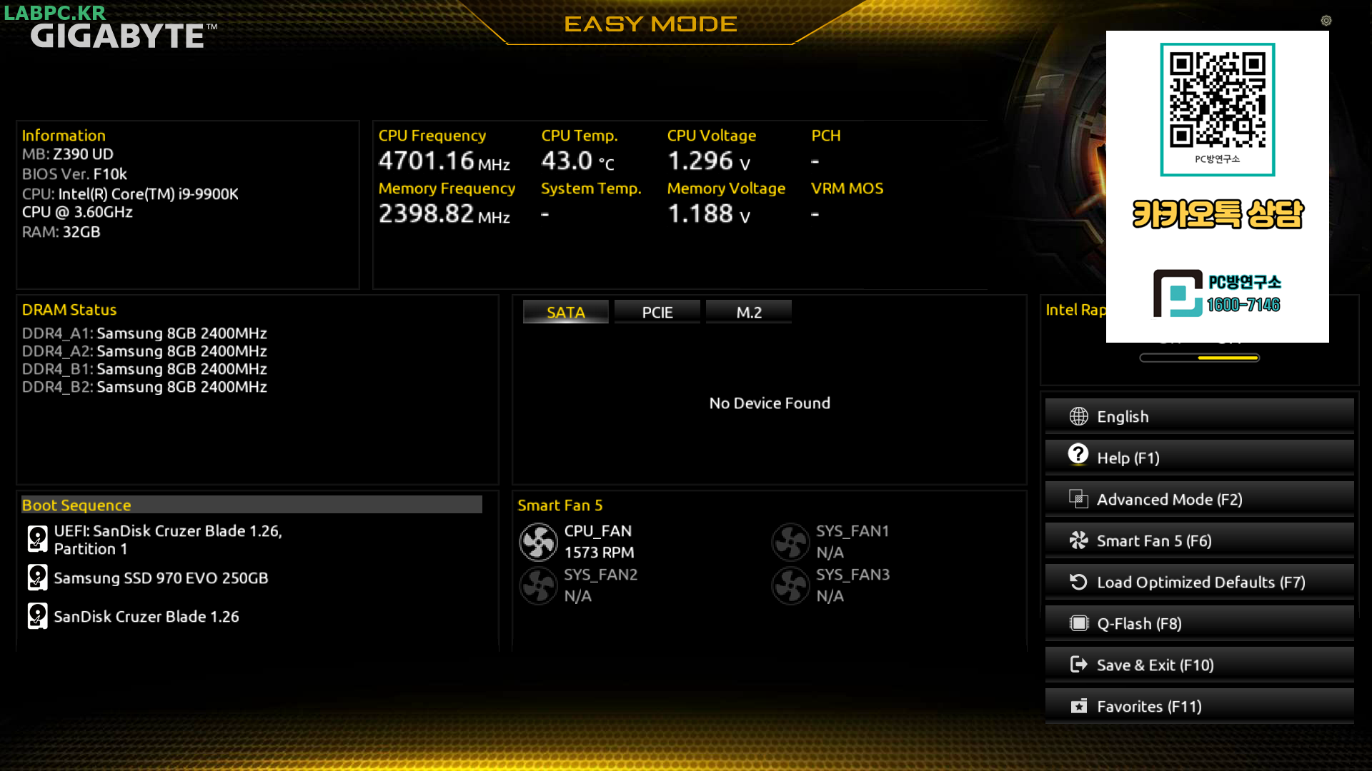 기가바이트 Z390 UD 지매니저 바이오스 셋팅