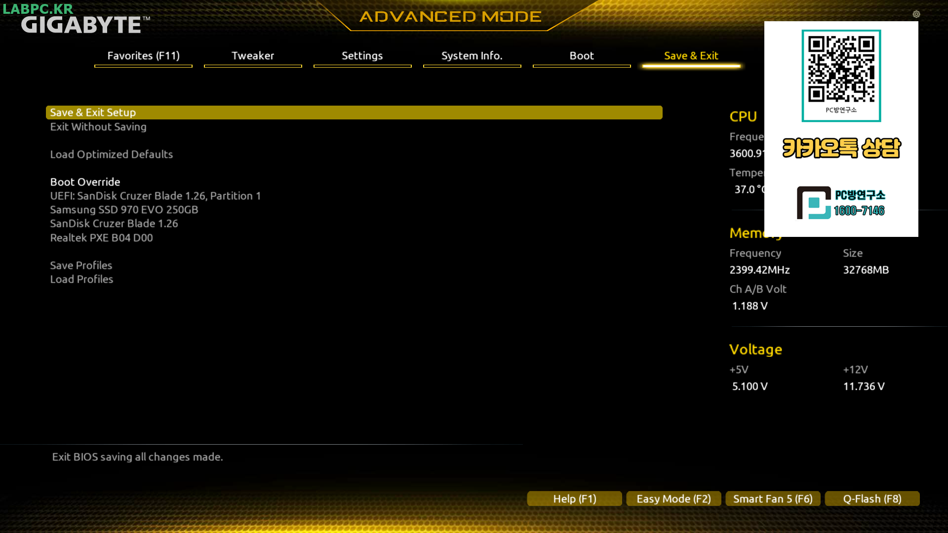 Save & Exit Setup를 눌러 저장하면