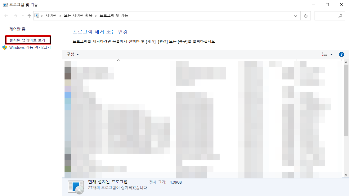 윈도우 실행에서 appwiz.cpl 입력하시면