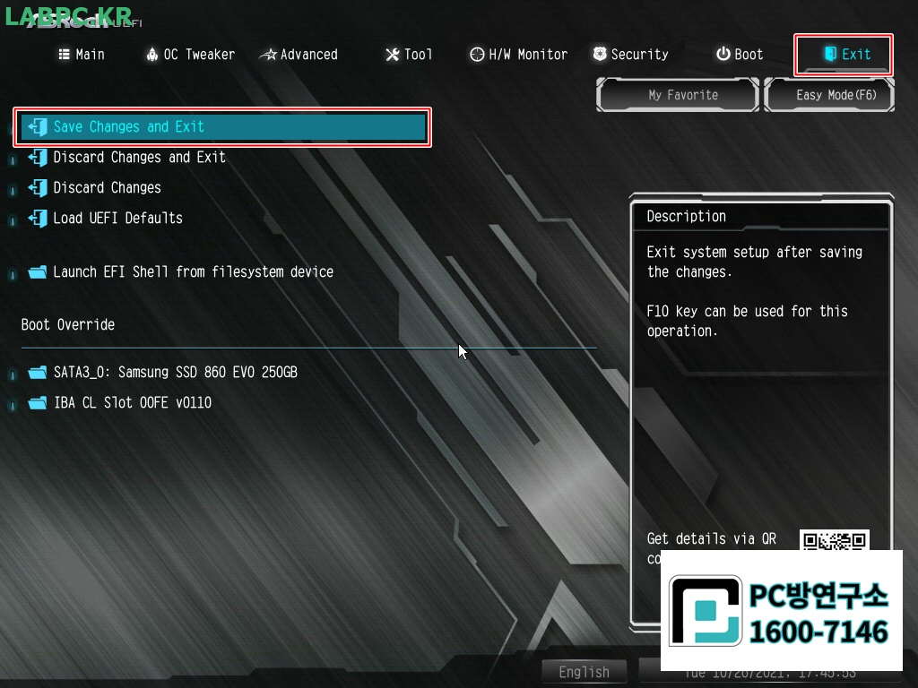 Save Changes and Exit를 선택합니다.