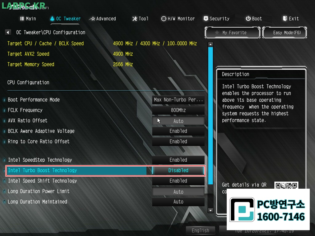 4. Intel Turbo Boost Technology 항목을
