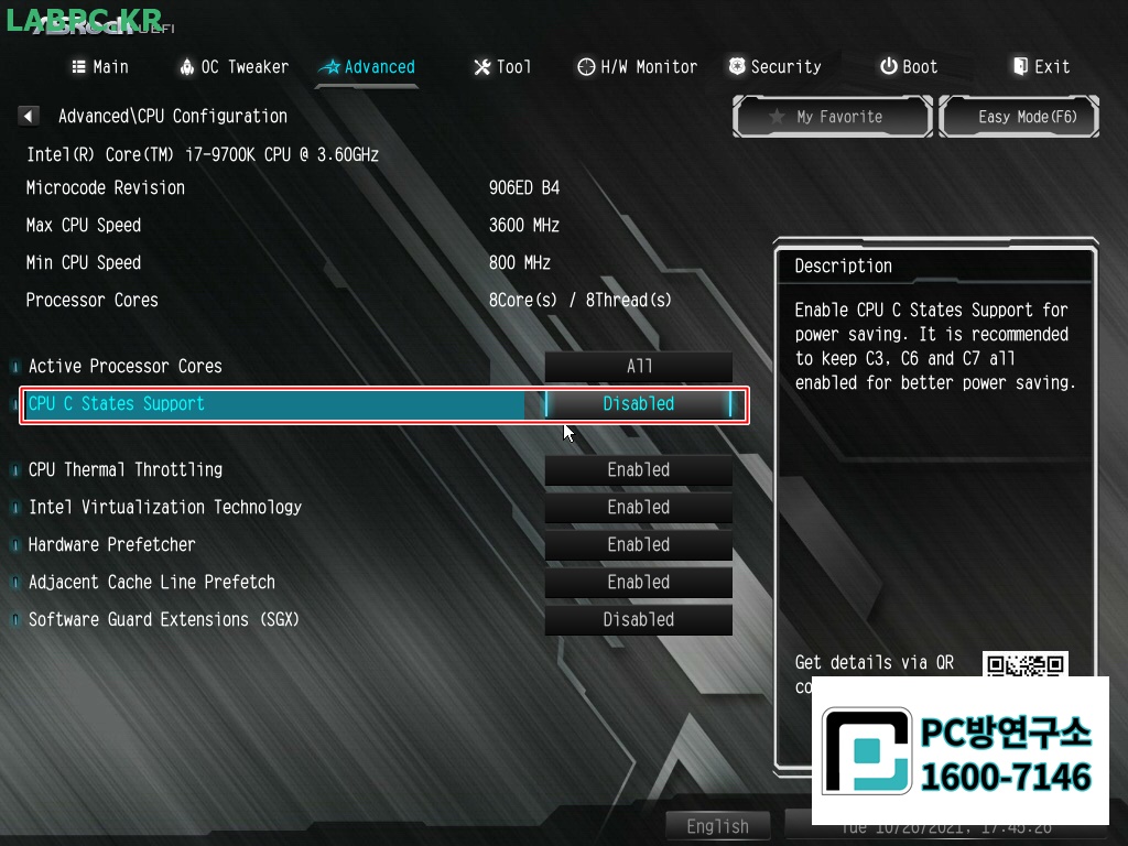 6. CPU C States Support 항목을