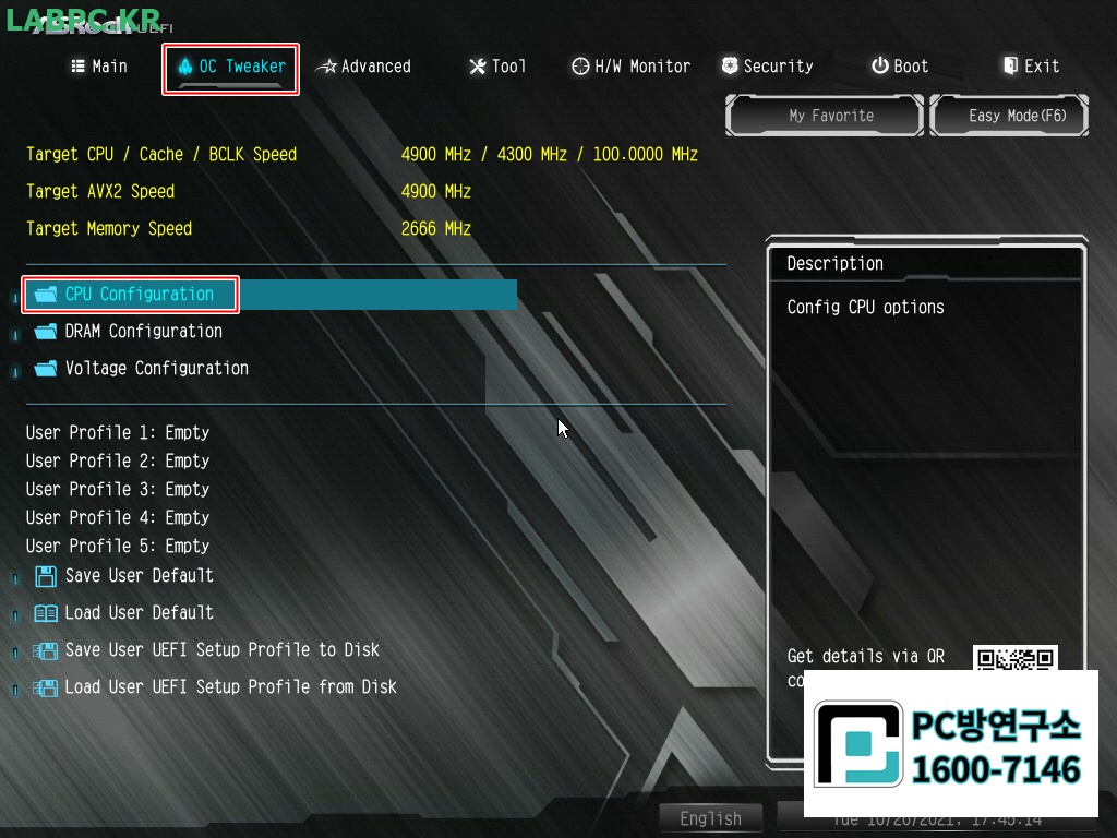 CPU Configuration 진입합니다.