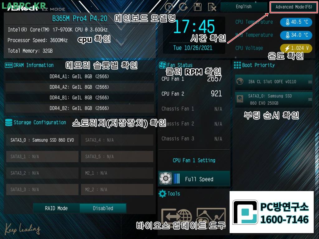 Asrock B365M Pro4 (CPU Turbo_off) 노하드 바이오스 설정방법