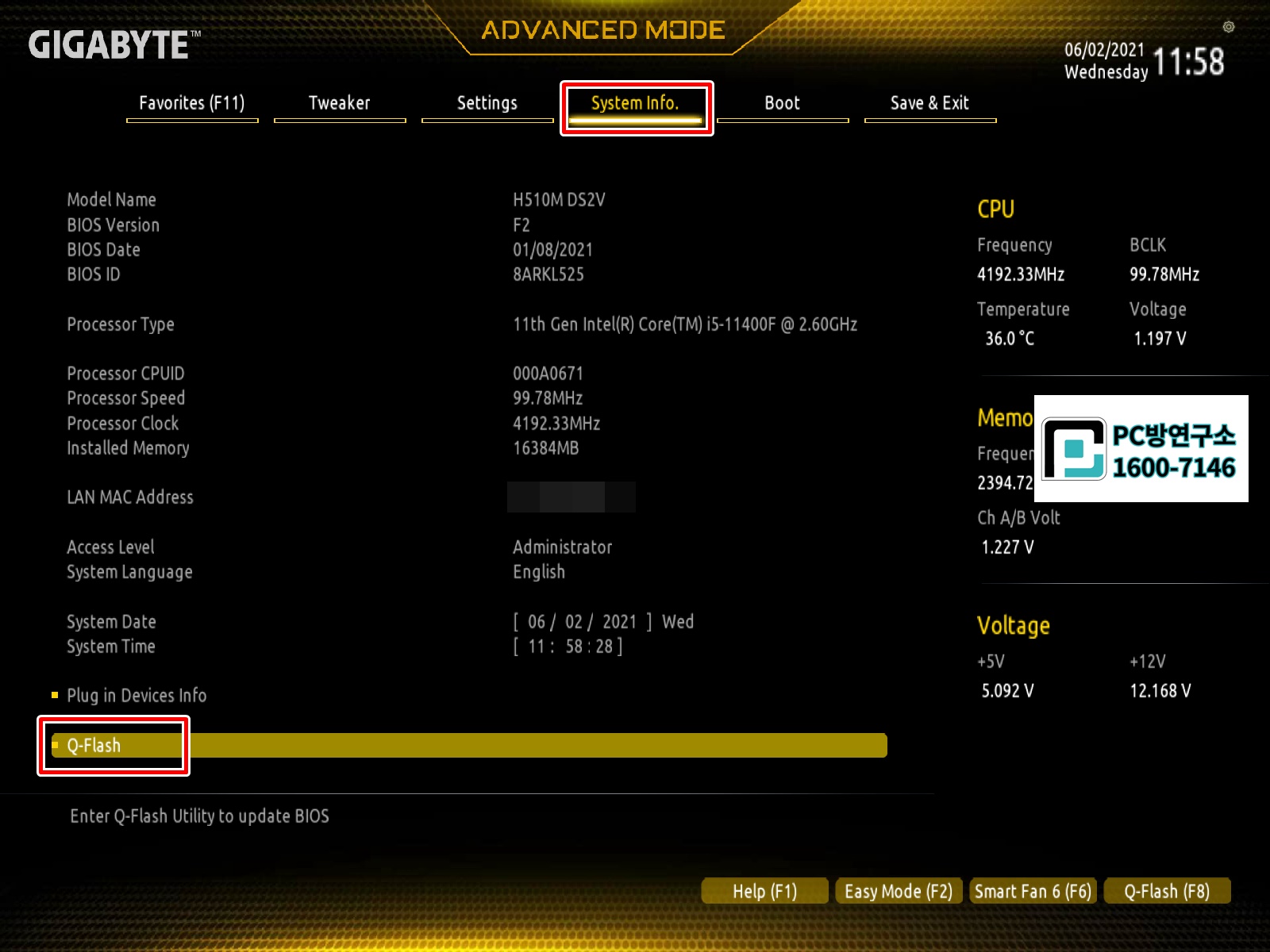 Q-Flash로 바이오스 업데이트가 가능합니다.