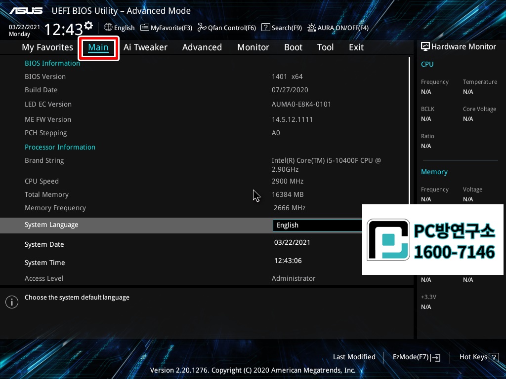 ASUS B460M-A 노하드 바이오스 설정 방법