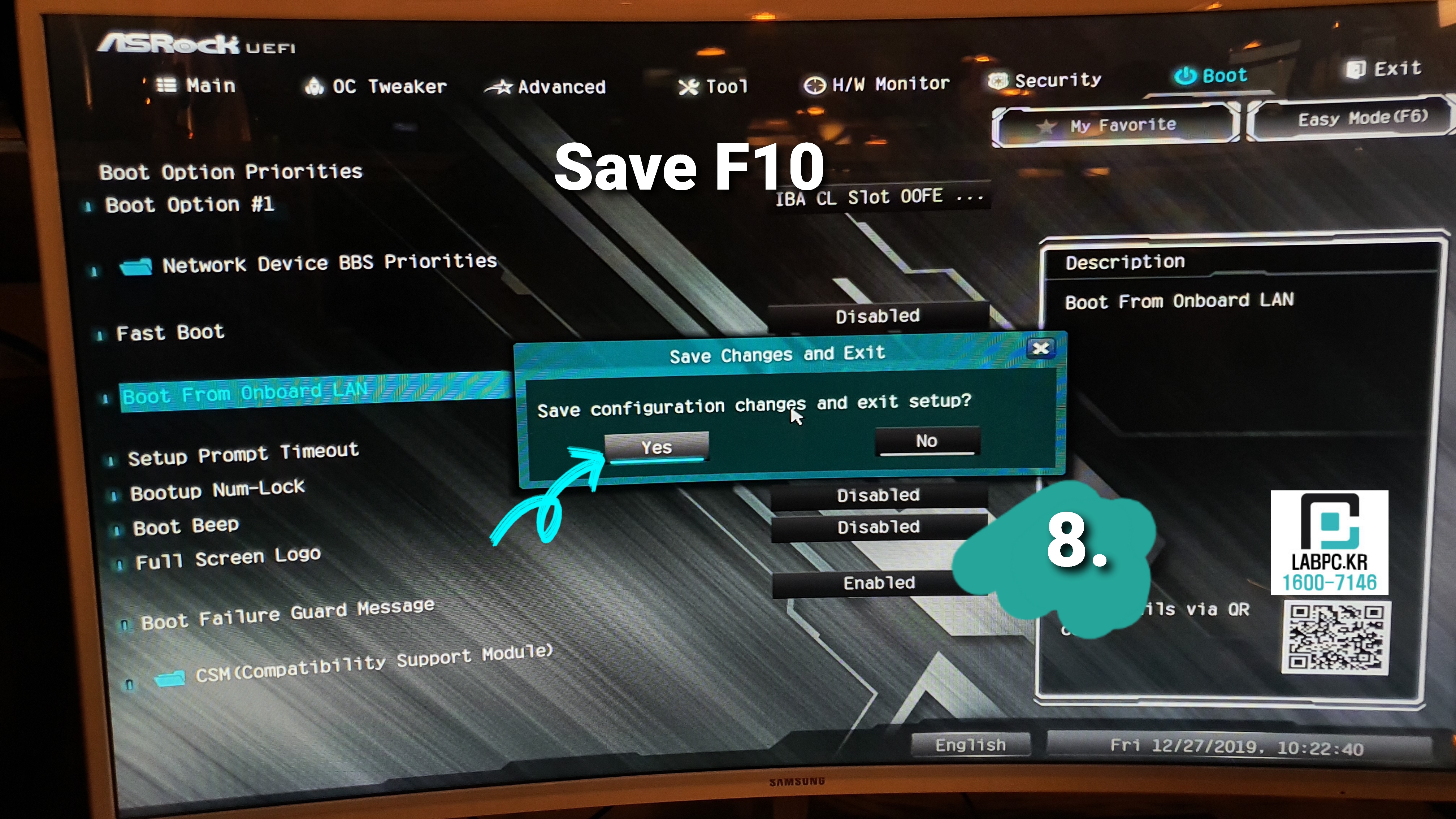 *이외에 Boot Option #1... 은 SSD가 손님 자리에 있다면 부팅 순서를 LAN이 먼저 오도록 설정해주어야 합니다.