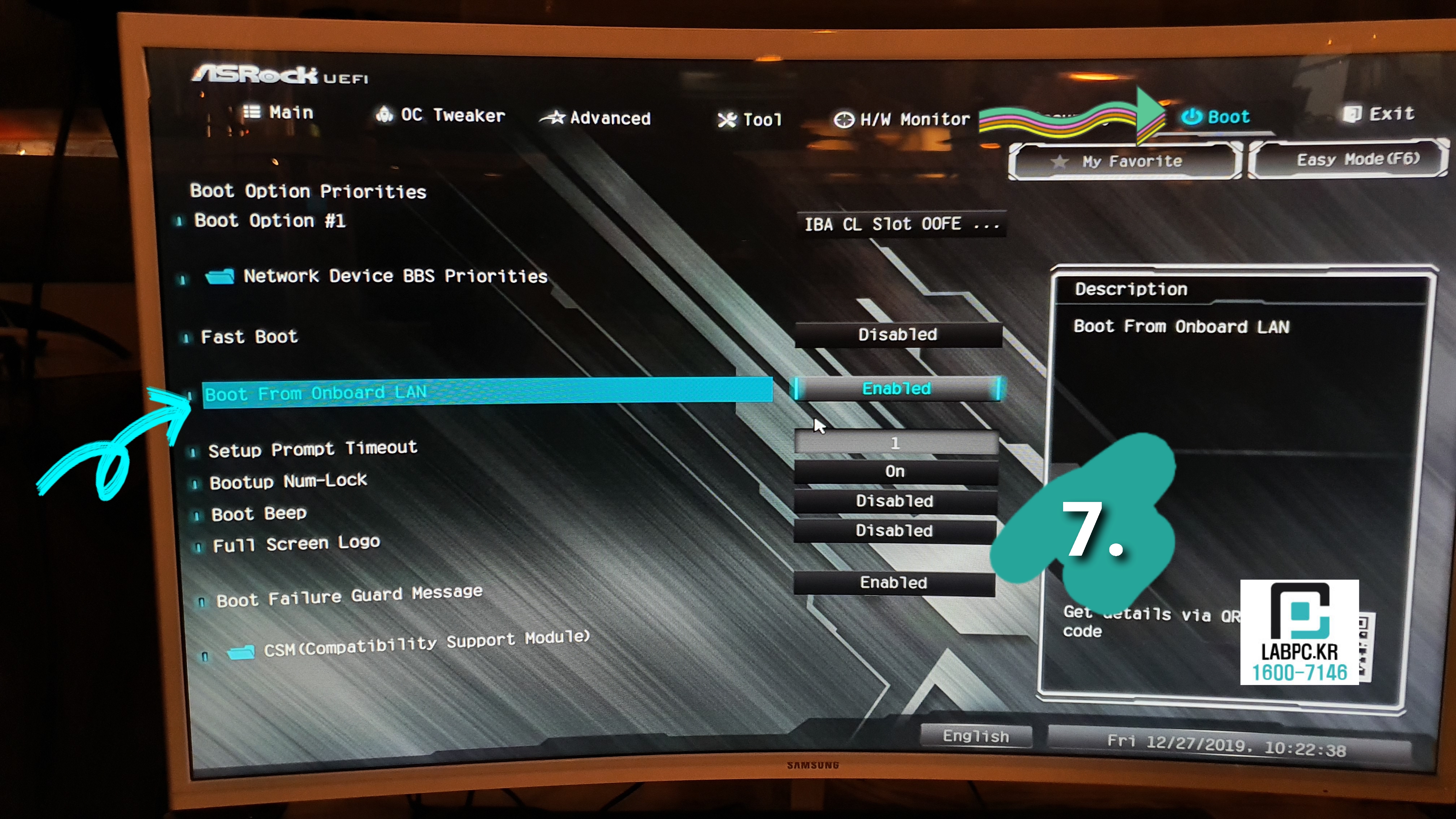 Boot From Onboard LAN 항목을 Enabled로 변경합니다.