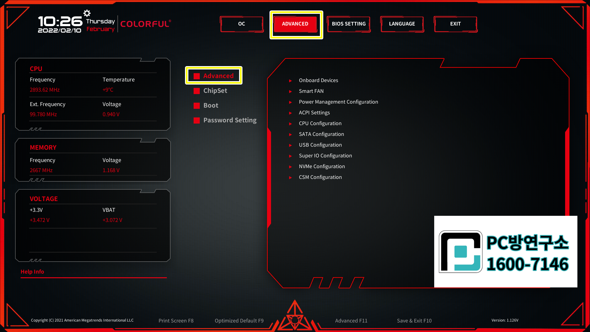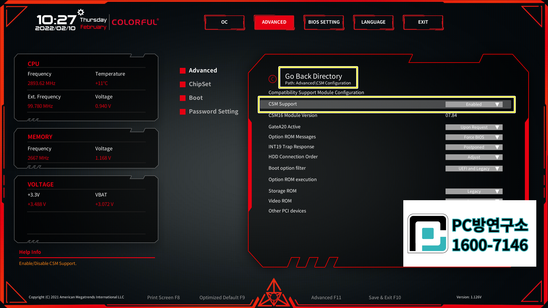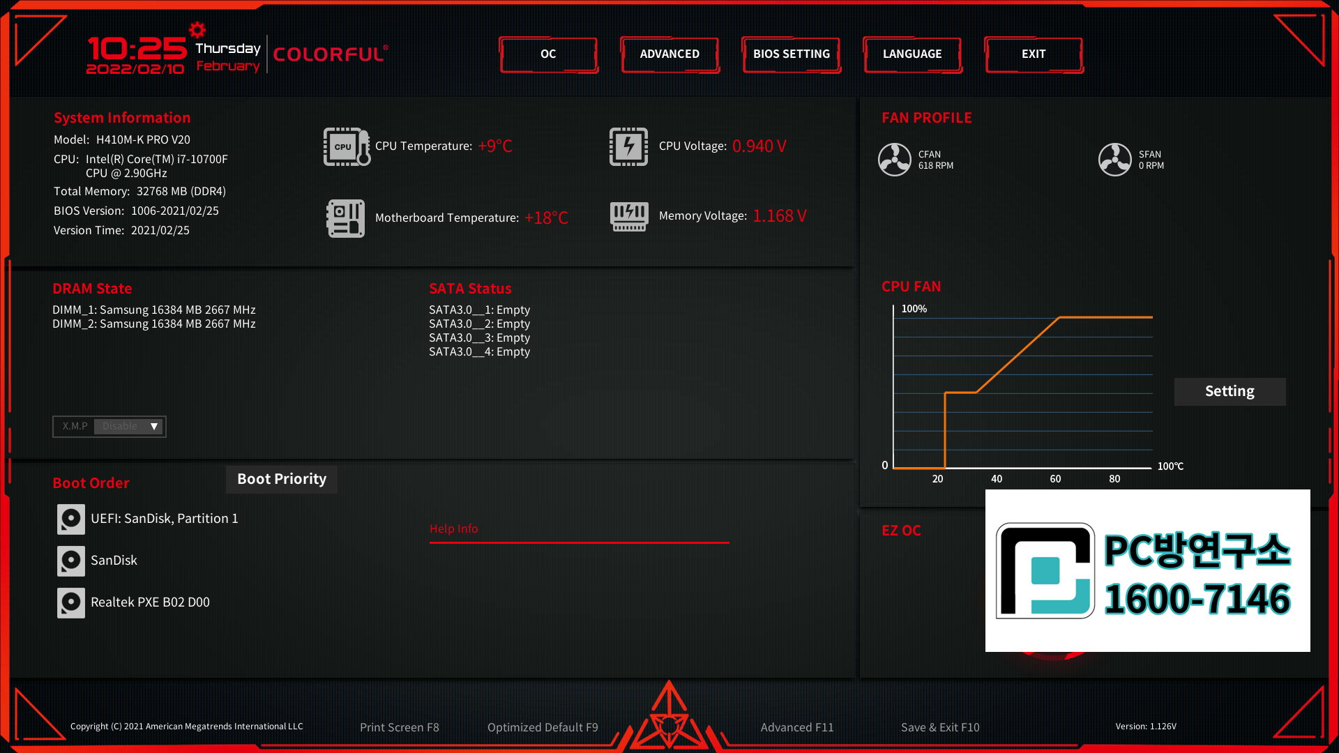 colorful H410M-K PRO V20 노하드 바이오스 설정방법