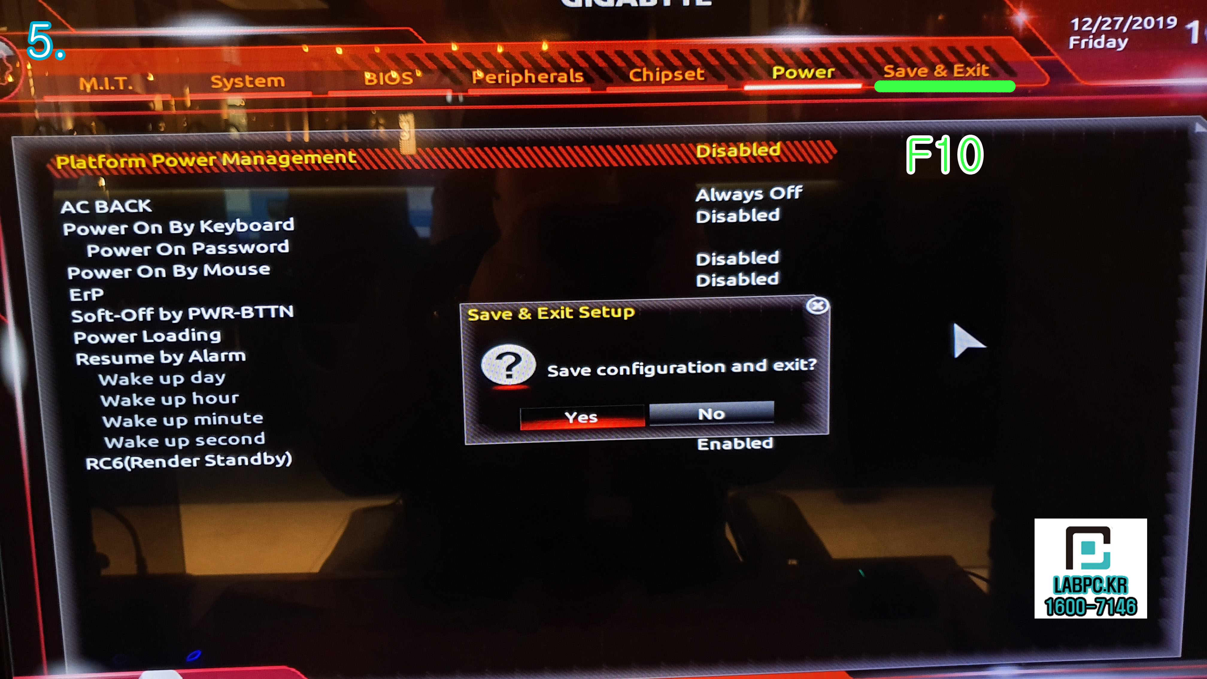 5. 모든 설정이 끝났습니다. 저장은 F10
