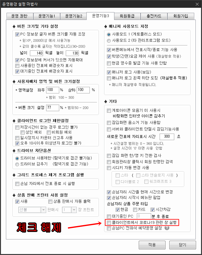 '클라이언트에서 코로나19 관련 창 실행'