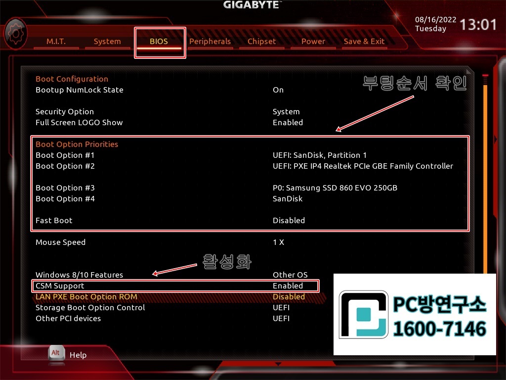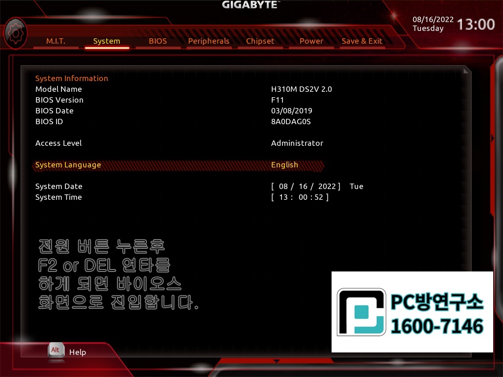 Gigabyte H310M DS2V 2.0 Uefi PXE 노하드 바이오스 설정방법