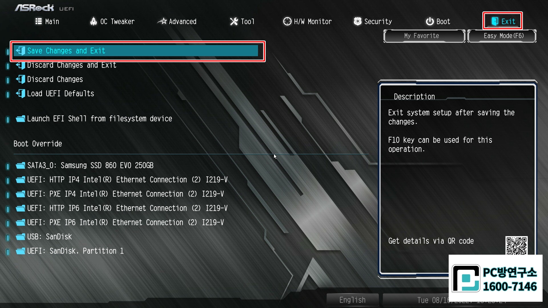 Save Changes and Exit 선택하여 저장해줍니다.