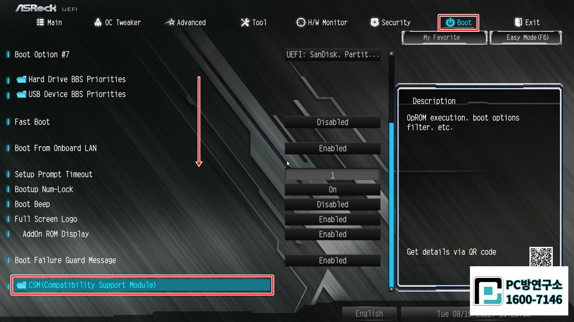 CSM(Compatibility Support Module) 항목으로 선택합니다.