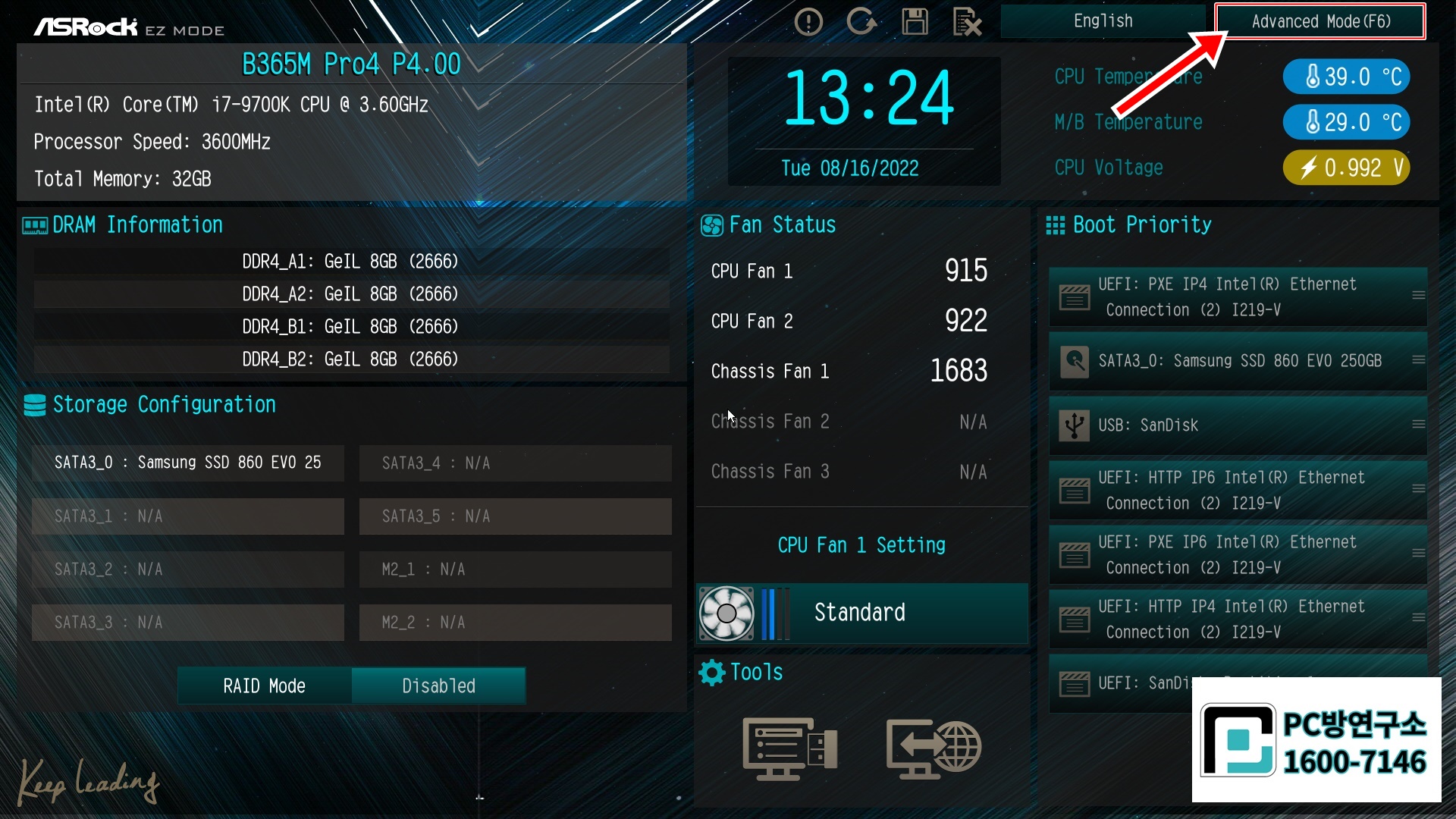우측 상단에 Advanced Mode (F6) 눌러 줍니다.