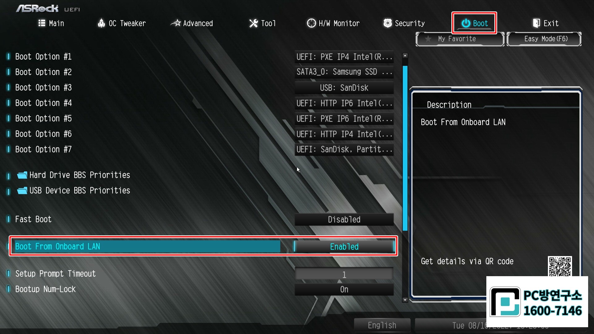 ASROCK B365M Pro4 uefi PXE 부팅 설정 방법