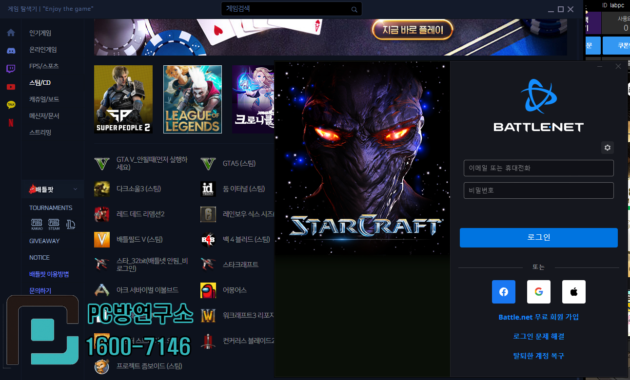 로그인 후에 PC방에서는 배틀넷은 파일을 하나 받습니다.