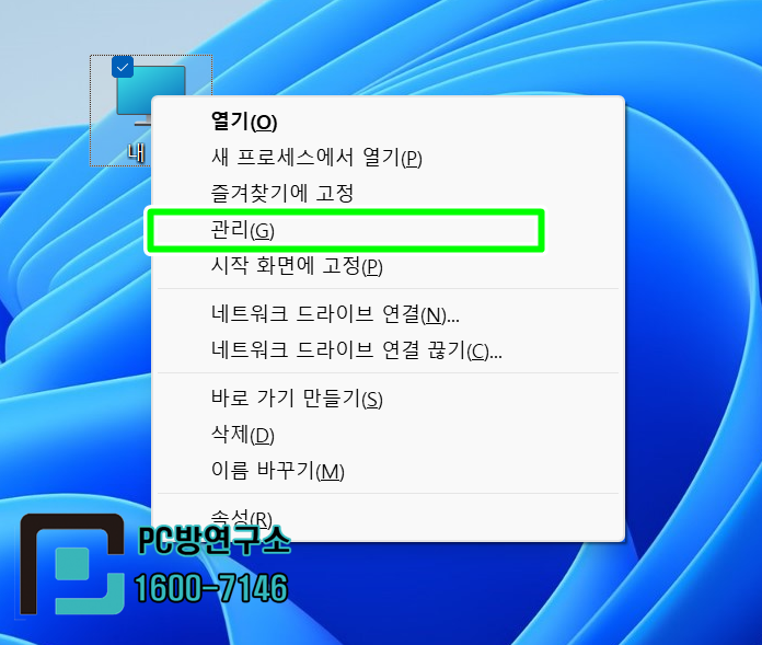 우선 내 컴퓨터(내 PC) 아이콘에서 우클릭을 합니다.