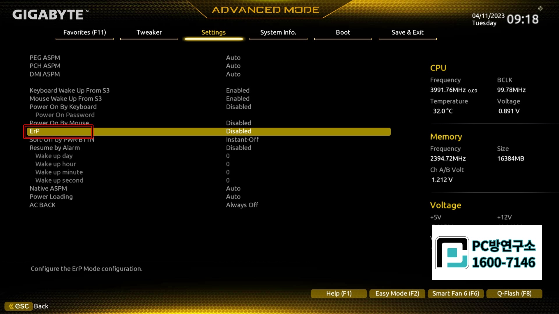 ErP를 Enabled로 변경하시면 절전이 실행이 됩니다.