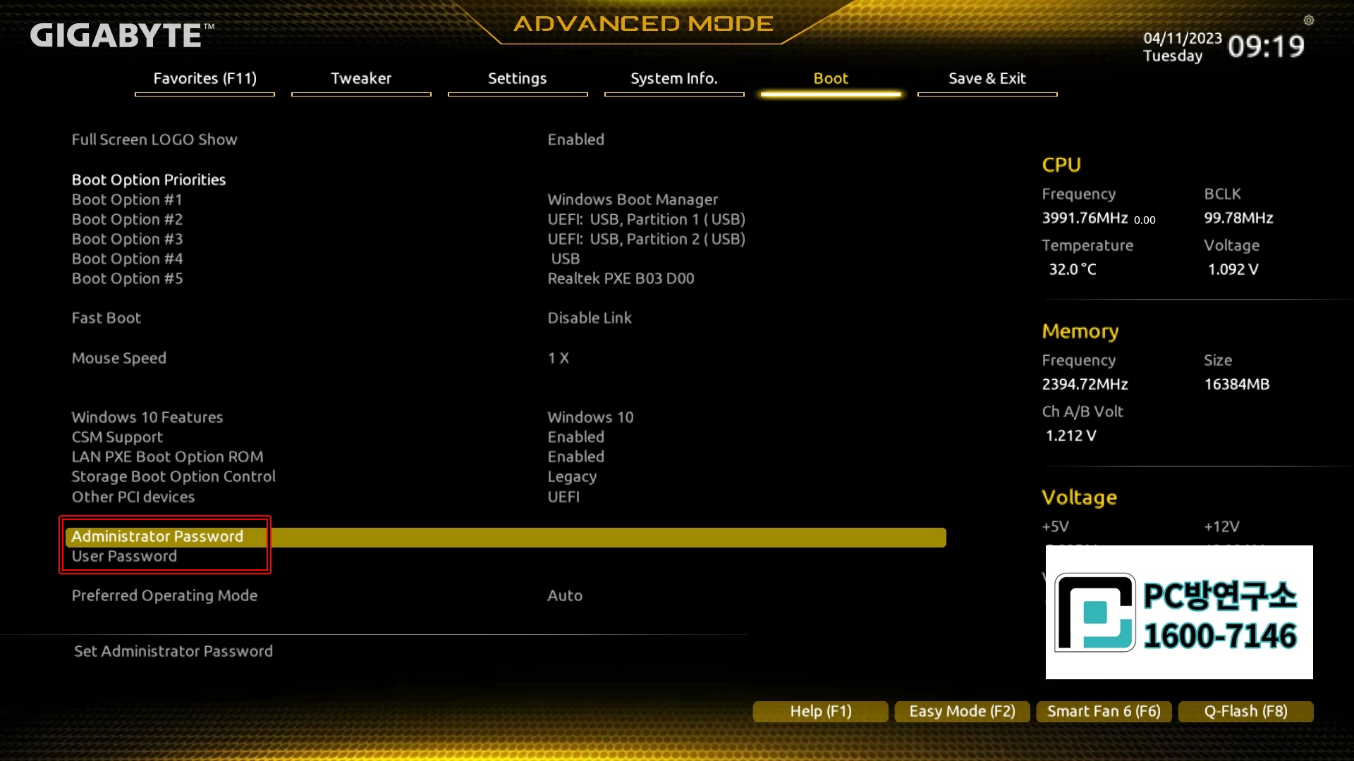 (암호를 잊어버리셨다면 바이오스 초기화를 시키면 됩니다.)