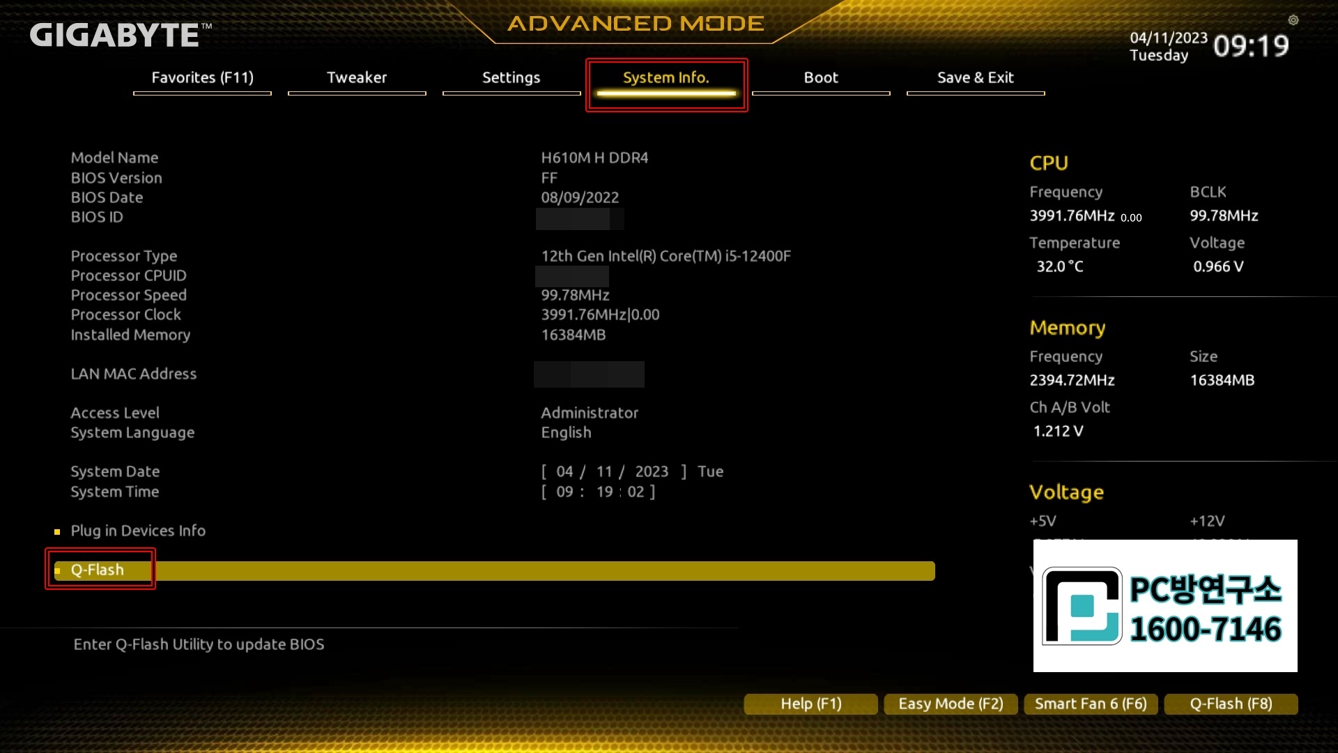 4. 바이오스 업데이트 메뉴 (참고사항) Q-Flash