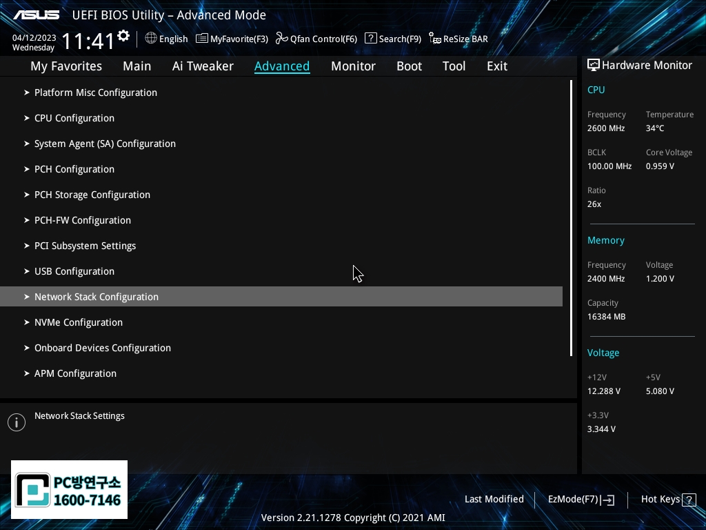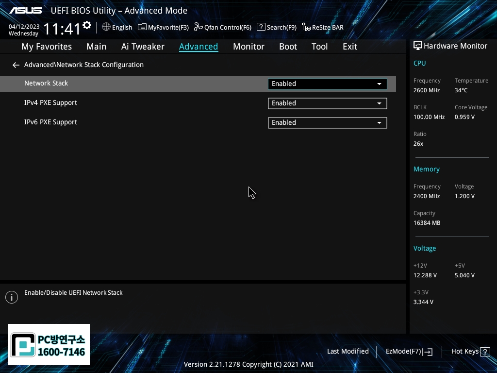 Network Stack 항목을 Enabled로 바꿔줍니다.