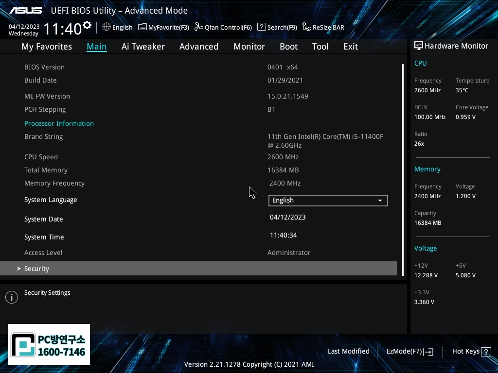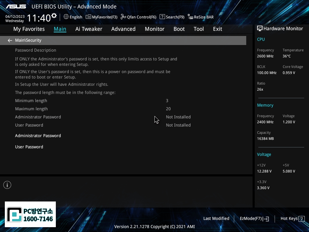6. 바이오스 암호 설정하기(필수 아닙니다)
