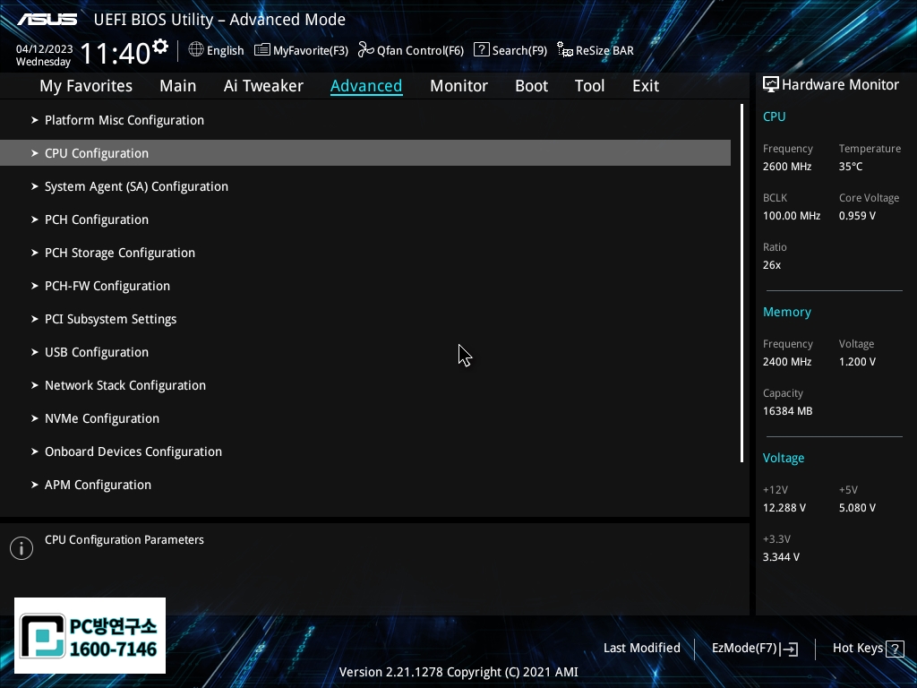 CPU Configuration으로 진입합니다.