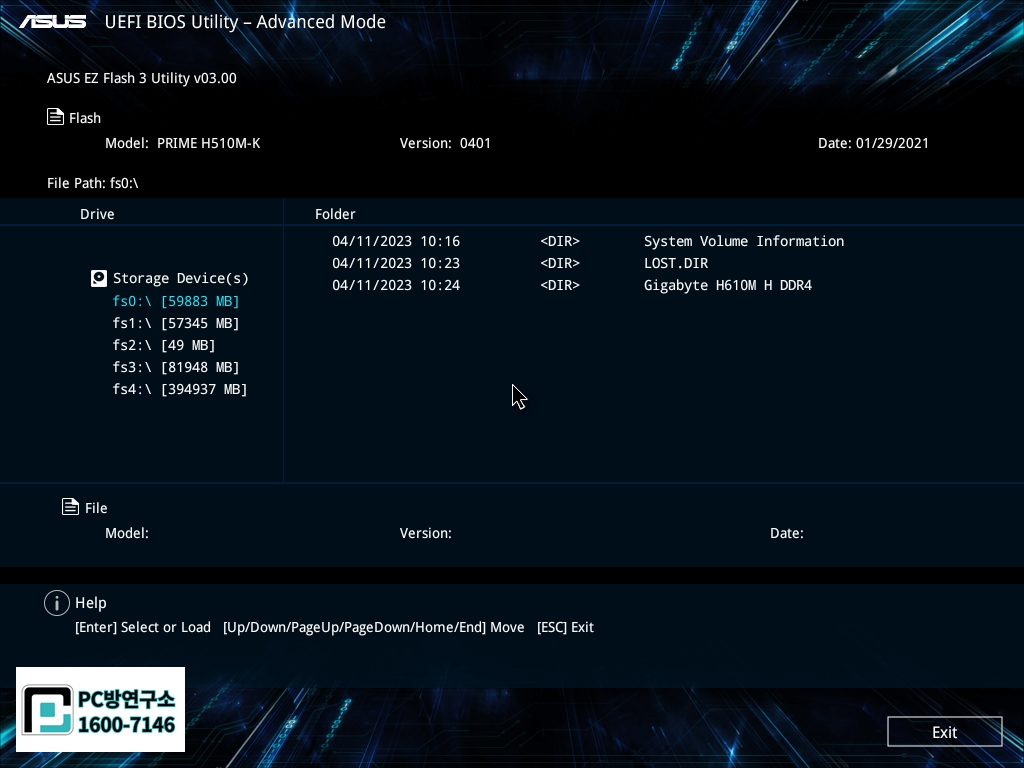 *바이오스 업데이트 중에 절대로 PC에 전원을 끄지 마세요