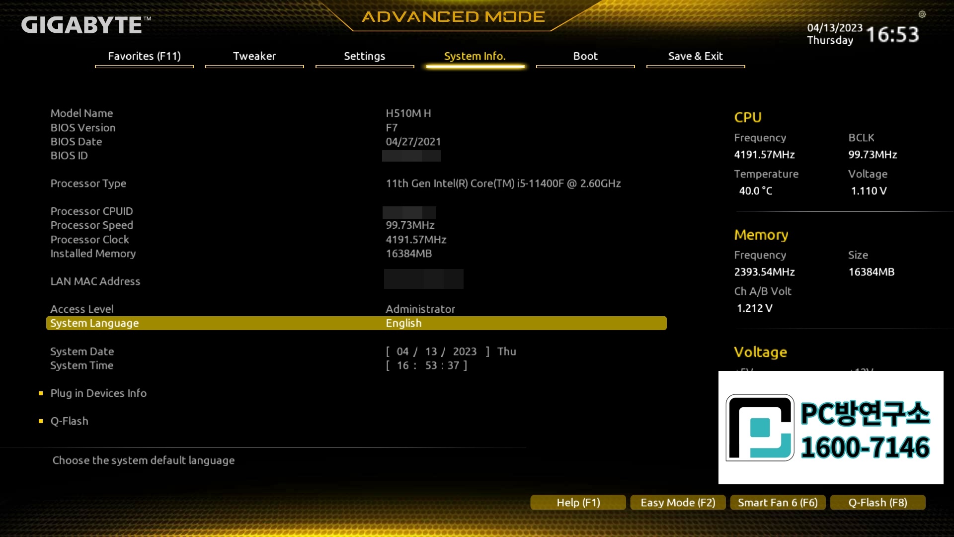 기가바이트 H510M H 보드에 바이오스 설정방법을