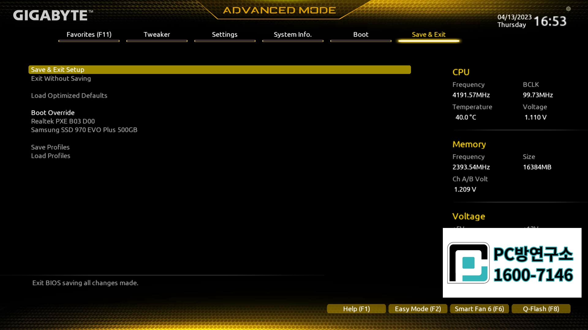 Save & Exit Setup을 누르게 되면 저장하면서 재부팅이 됩니다.