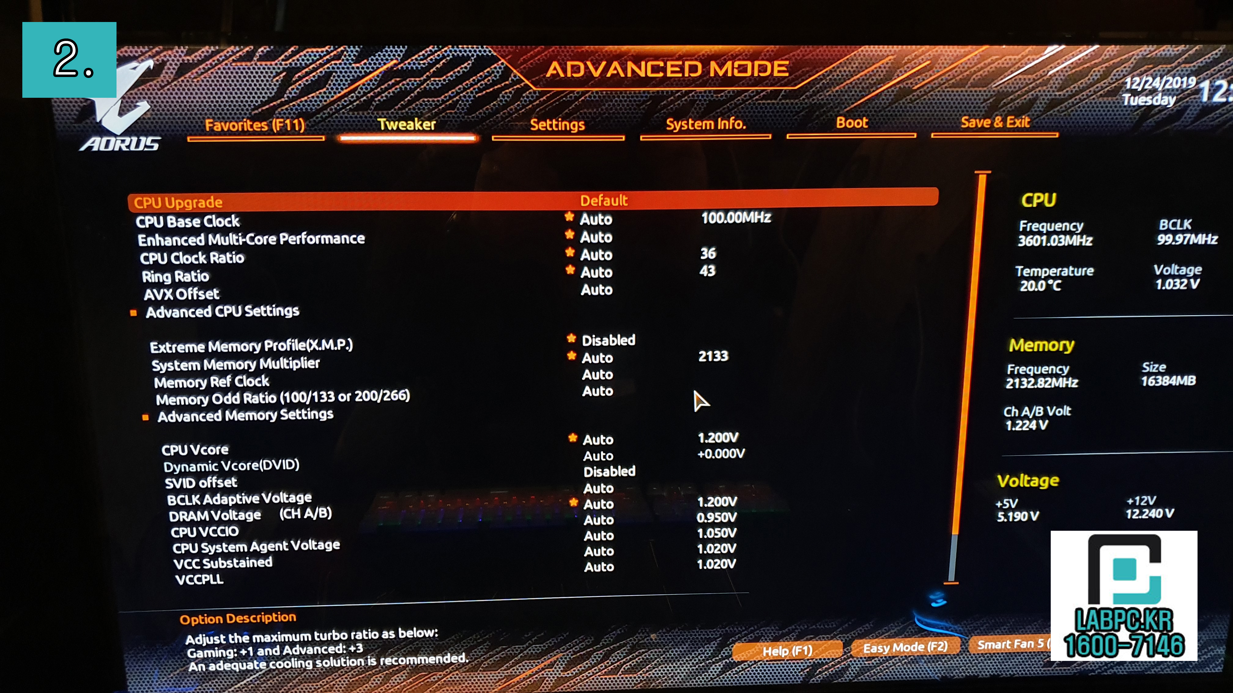 Tweaker > Intel(R) Turbo Boost Technology를 Disabled 해줍니다.