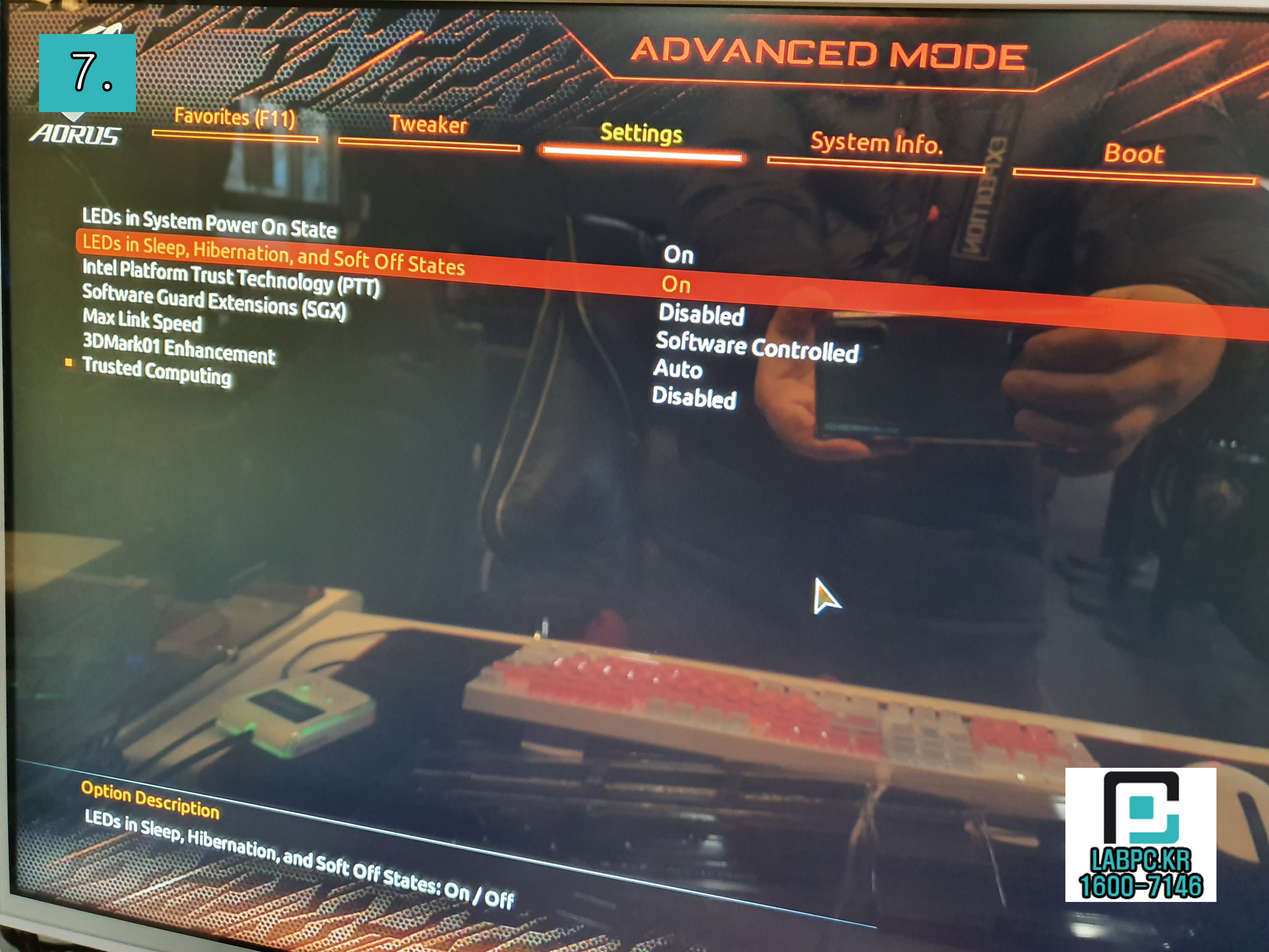 6. 추가적인 기능입니다. 바로 대기 중에 LED를 켜는 옵션인데요