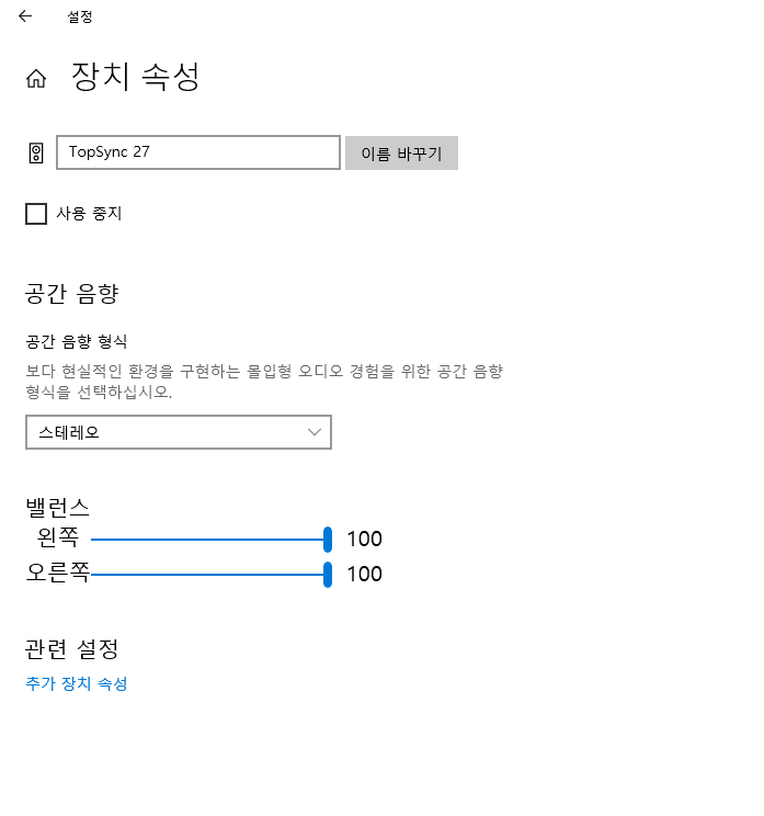 아래쪽에 관련 설정에 '추가 장치 속성'을 클릭합니다.