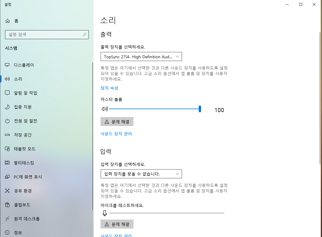 거기에서 '소리 설정 열기'를 클릭해줍니다.