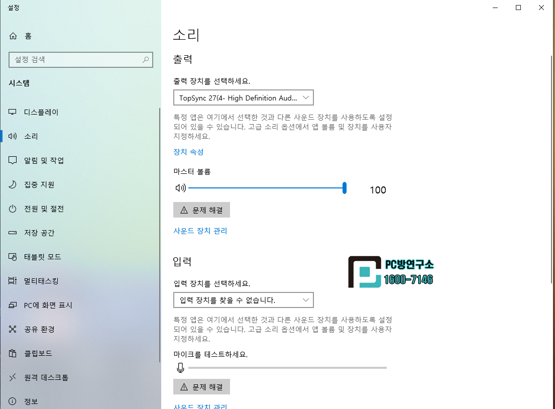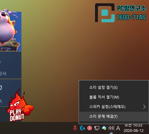 1. 우측 시계 옆 스피커 모양 아이콘을 마우스 '우클릭' 하시면