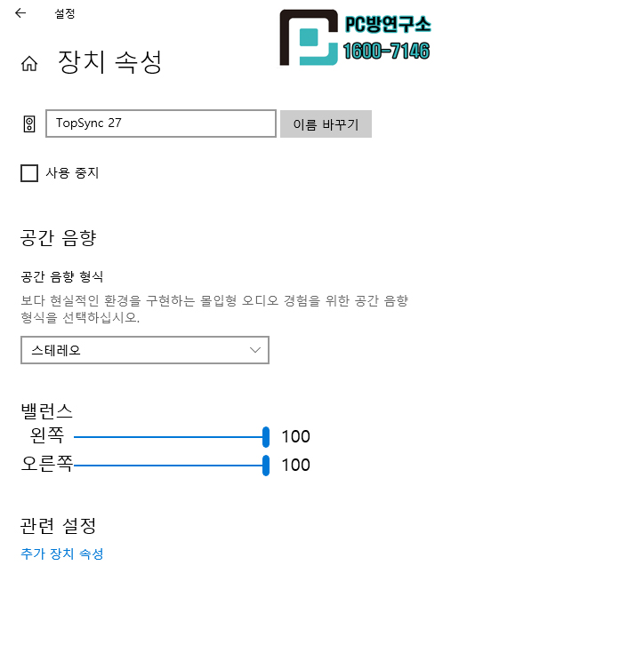 3.아래에 '추가 장치 속성'을 클릭하면 팝업이 하나 뜨게 됩니다.