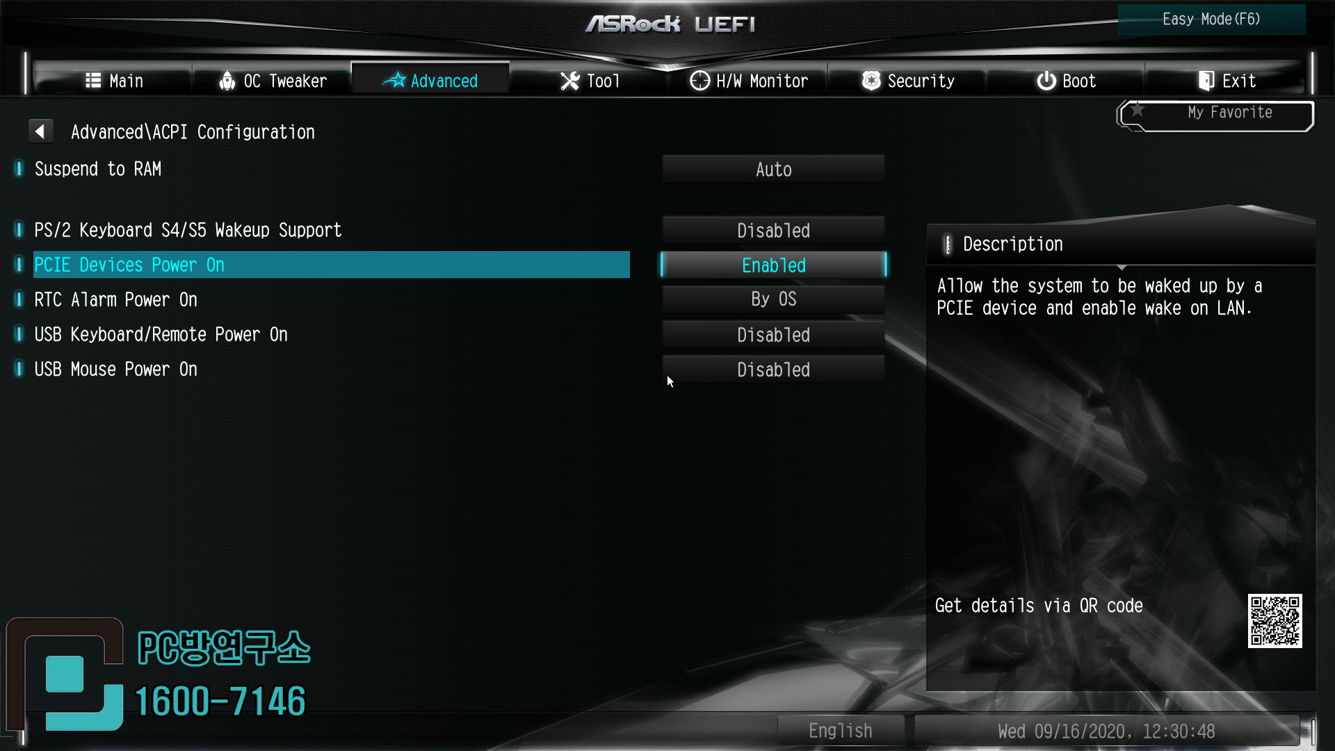 PCIE Devices Power On을 Enabled로 변경해줍니다.