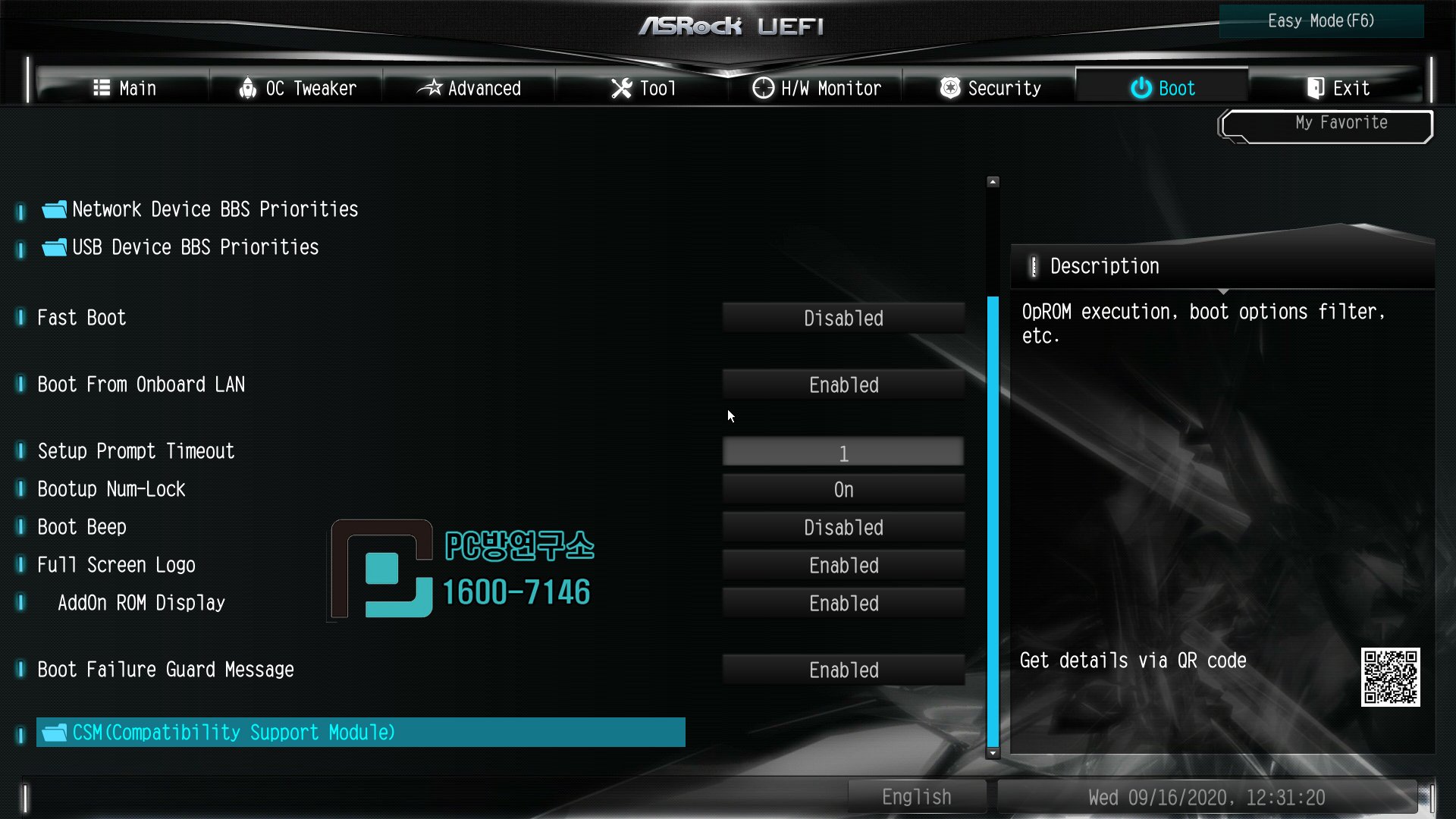 CSM(Compatibility Support Module) 메뉴로 진입합니다.