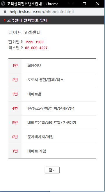 네이트 고객센터 1599-7983로 문의를 했습니다.