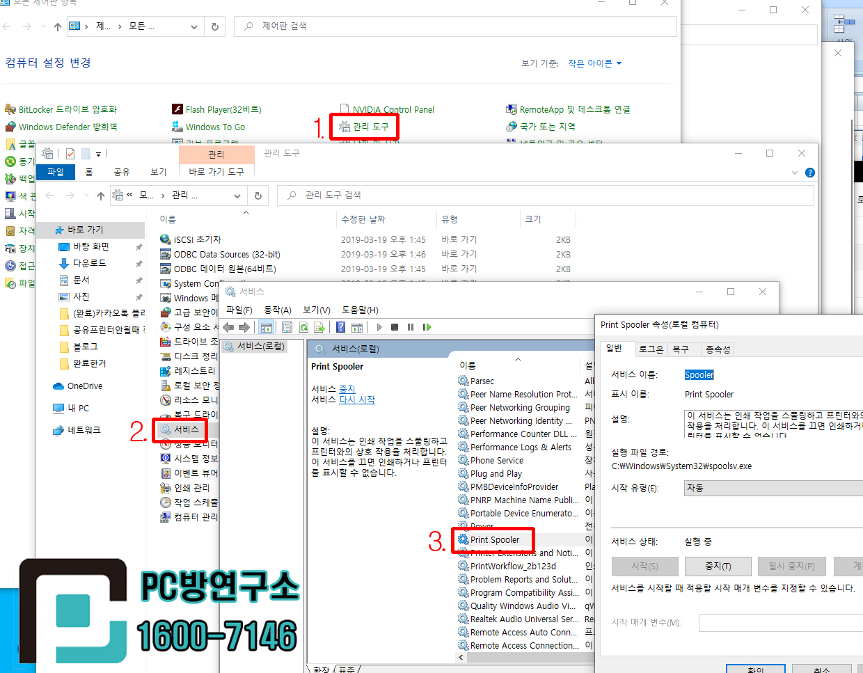 1번째는 서비스 항목 중에 Print Spooler 가 있습니다.
